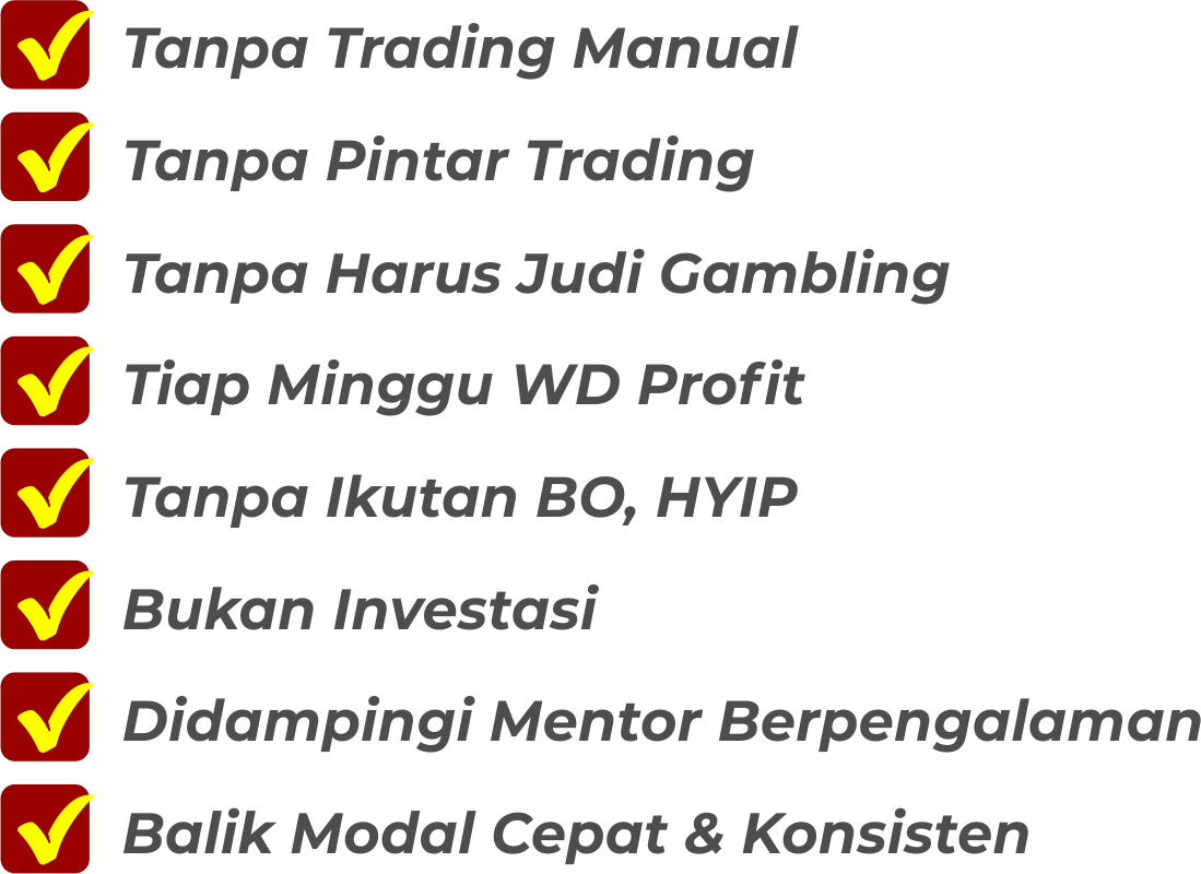 Jika syarat ketentuan diatas ada yang dilanggar, maka kami tidak bertanggung jawab atas apa yang terjadi pada keanggotaan dan permodalan Anda.